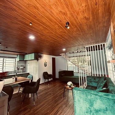 A premium A-frame resort showcasing distinctive designer elements and bold architectural character. The project includes specially curated party spaces, creating an immersive setting for celebrations and refined leisure. Clean lines and purposeful detailing define the overall aesthetic. Each zone is designed to offer a unique experience while staying cohesive in design language.