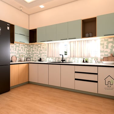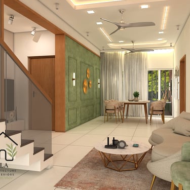 This house interior is designed to maximize space through open layouts and modern colour schemes. Clean lines and minimal detailing create a sense of continuity and flow, enhancing both functionality and aesthetic appeal. The design fosters light, airiness, and a modern lifestyle. The project is under construction.
